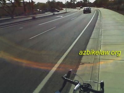 Now, let’s imagine the AZ image is within an urban transect…the car is obviously given priority by the 5 wide lanes (with 1 turn lane). The adaption technique of Vehicular Cycling, encourages (and advocates for) this car-centric planning. Perception of safety is drastically reduced, as people attempting to bicycle without facilities are only given the “Swim with the Sharks” option to commute on. Dramatically low bicycle ridership reflects this as the young, and elderly have been marginalized completely from anything but being chauffeured to school/stores/parks/theaters. While bicyclists accident rates using VC methods may be low in this scenario, safety to pedestrians and for car commuters traveling at posted speeds of 40mph just outside of the residential neighborhood (seen in the top left portion of the photo) is decreased. Here, the bike lane is a band-aided after thought as the car is still top of the hierarchy. Pedestrians are at the bottom…though they do have a wide sidewalk, but absolutely no shade (this is Arizona, btw), no place to go (zoning), and a dangerous multi-lane high-speed street to cross. This model also emphasizes large over small businesses…in other words, Wal-Mart will build next to this road.