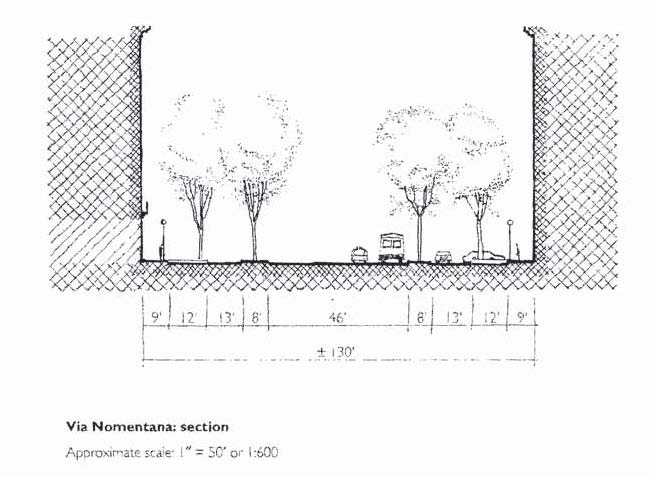 | Via Nomentana | 84 feet | 46 feet | 64% |