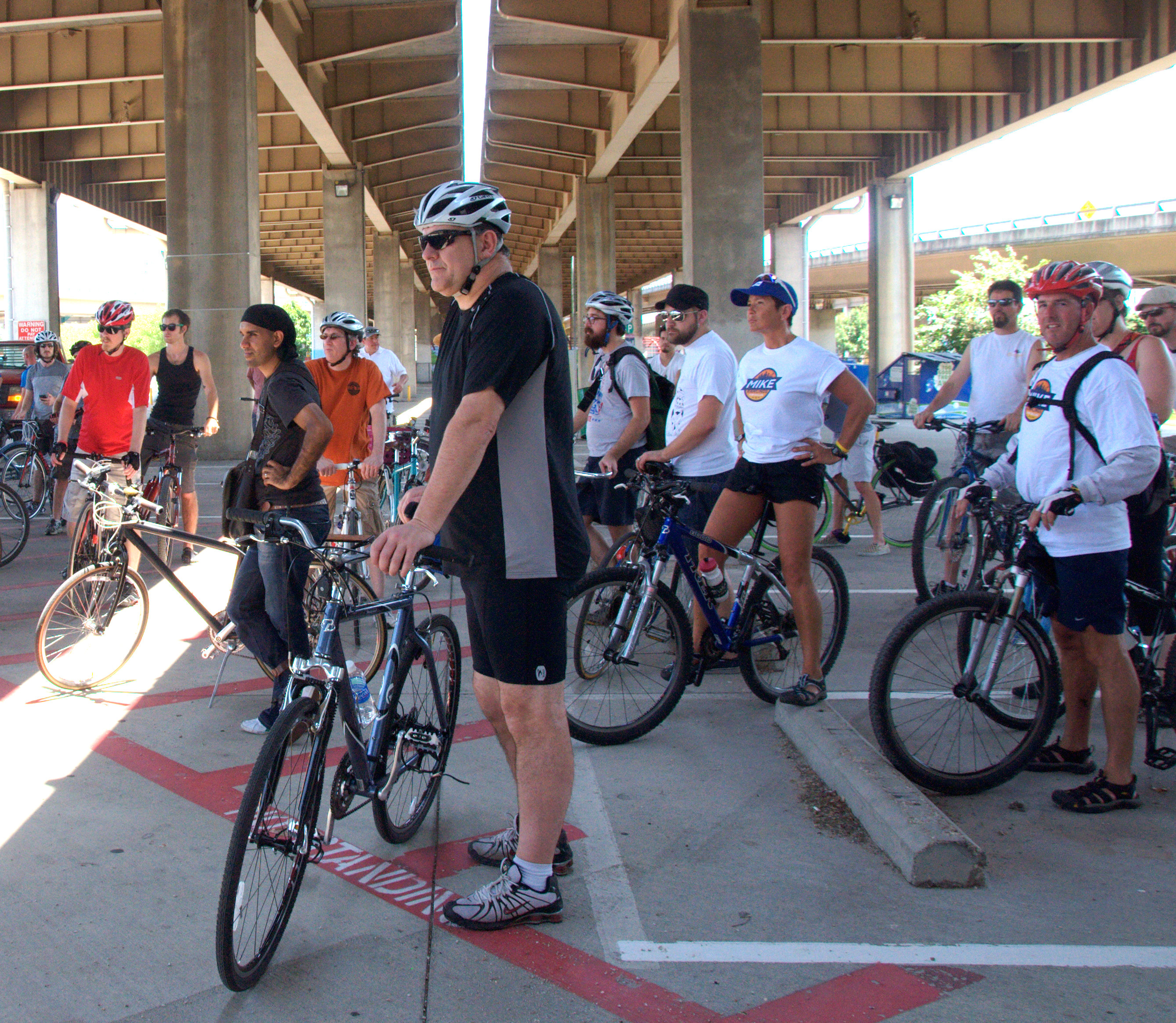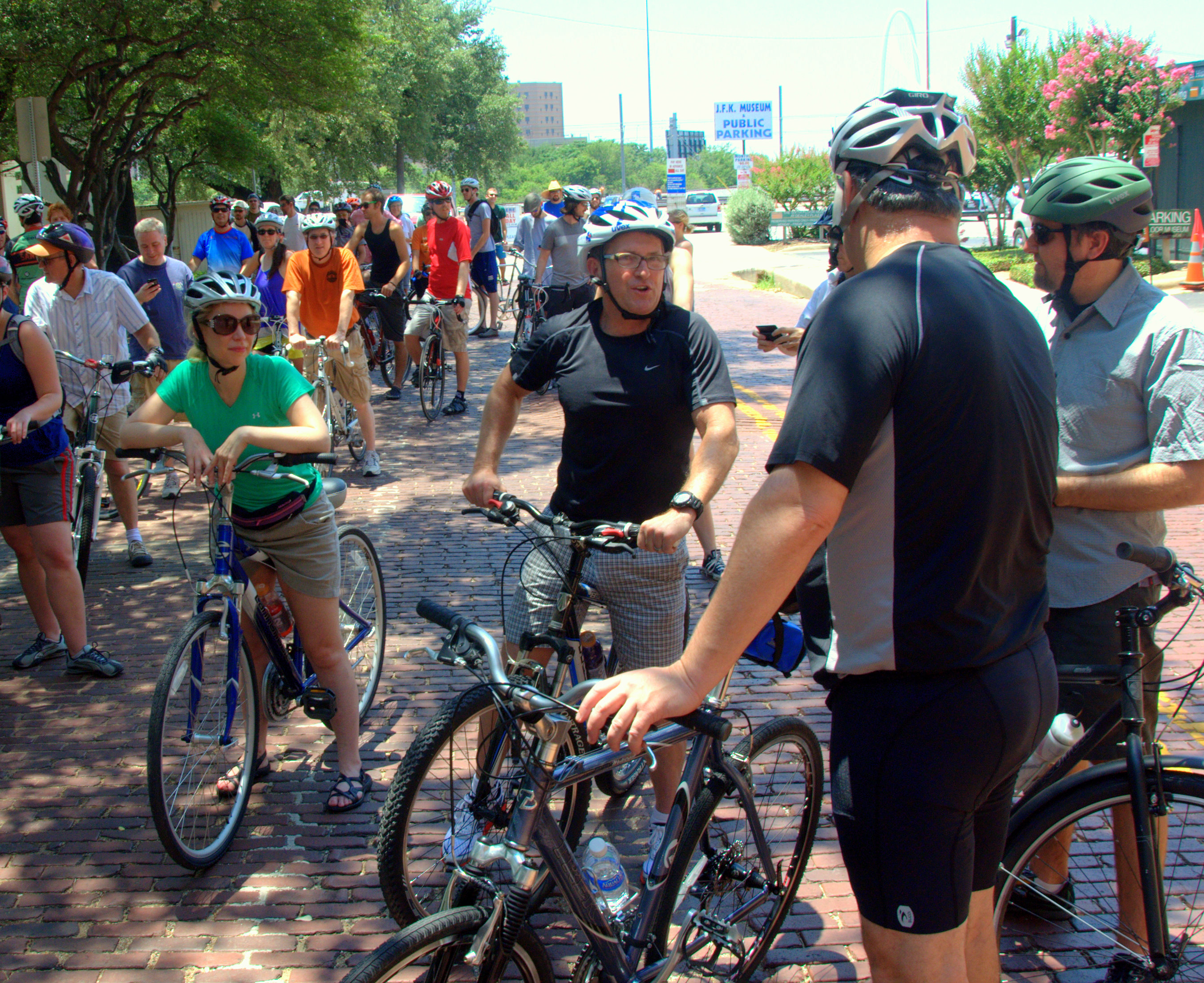 Thanks to all who made it out to the Hellhound on My Trail history ride. We had nearly 100 take part, including both mayoral candidates David Kunkle, and Mike Rawlings. The temperature hovered around 95 degrees, but everyone did a good job of riding through the heat. More pics of the ride can be found on Flickr here, and Facebook here. Later that evening, several BFOC’ers cooled off at a front yard Mavs watching party. Couldn’t ask for a better way to end the night!