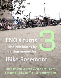 Join BFOC as we celebrate three years of Eno’s! Bring a T-Shirt, Bag, Bloomers or any cloth and get a screen print of the BFOC or iBIKE ROSEMONT logo. Drink specials, karaoke, bike raffle and plenty of fun to keep the whole gang entertained. All the cheer goes to a good cause! We are building the first safe route to school in Dallas! Bike lanes to Rosemont.