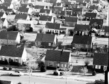 We haven’t even begun to touch suburban housing. In 1934, the Federal Housing Administration was created which subsidized middle class families moves to the newly developed suburbs. The Veterans Administration and the Federal Housing Administration’s (FHA) mortgage loan program provided over eleven million low-cost mortgages after WWII. These mortgages, which typically cost less per month than paying rent, only insured homes of a typical type and size – generally new single-family suburban construction. Furthermore, a home insured by the FHA was required to be of a certain size and quality desired by those of above-average means, to guarantee quick resale of the home. FHA did not support renovations of already-existing homes, construction of row houses, mixed-use buildings, and other urban housing types. These policies led to deterioration of the urban housing stock and disinvestment in existing urban housing.
