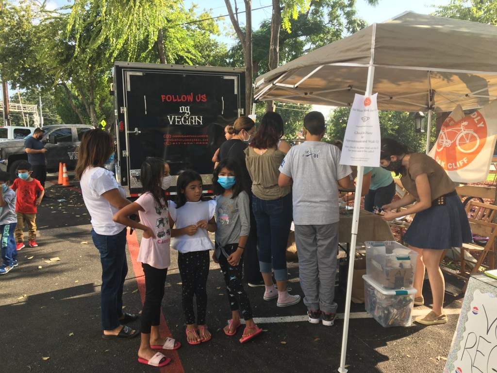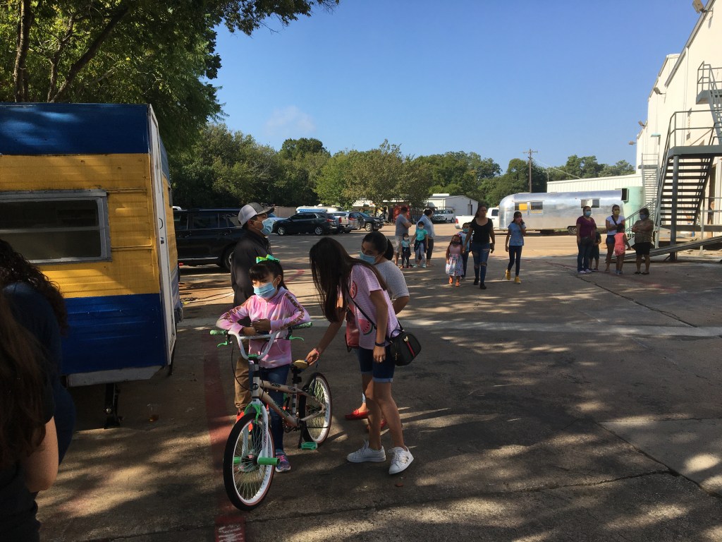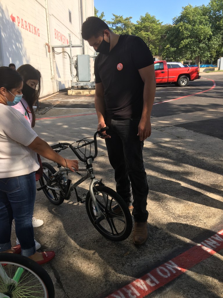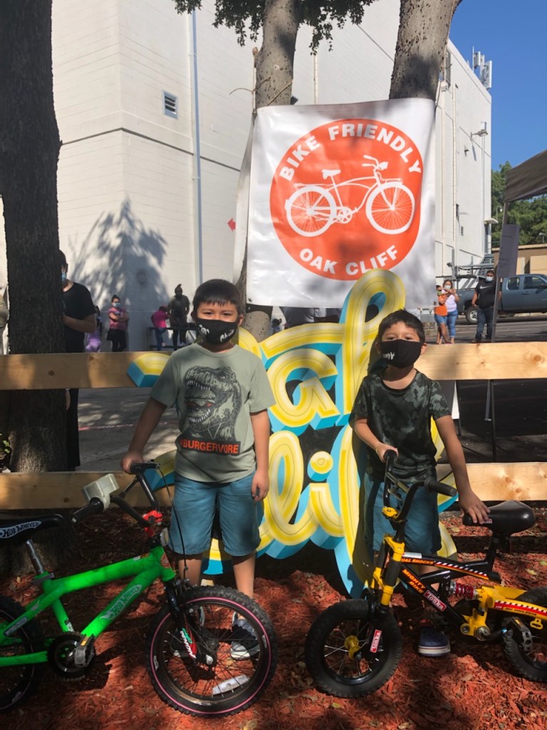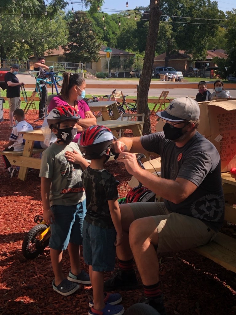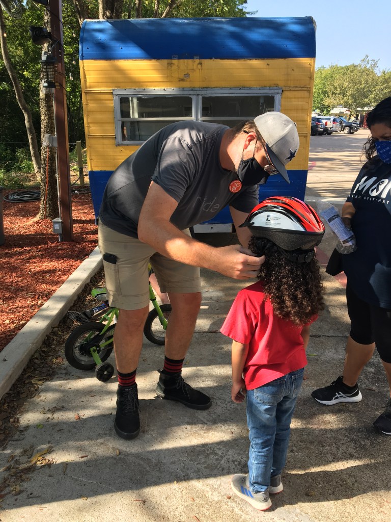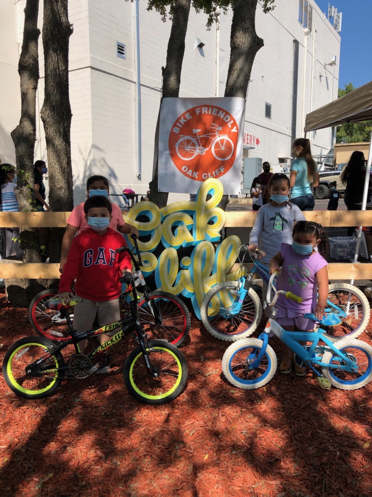 The day began with over 55 refurbished kids bikes ready for families to pick out. Over 40 bikes were donated from The Bike Gangs of Fort Worth, a group that receives bikes from the Fort Worth community and the City dumps with community volunteers who fix them up. Another 20 had been donated to the Oak Cliff Bike Synergy shop and were refurbished by bike shop employees for the event. Throughout the day, another 8 bikes were donated by attendees, checked, cleaned, fixed, then given out to other attendees. Thanks to Bike DFW we also gave out over 60 helmets and lights.