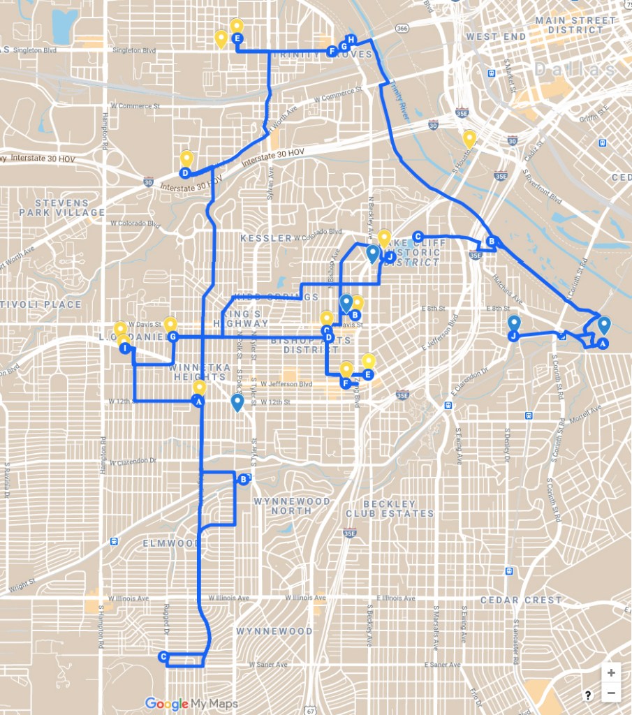 This year, we’re listing our favorite historic sites in Oak Cliff and recommending two routes** (a shorter 8.5mile loop, and a longer 22mile loop)** taking you to the best bike lanes, bike paths, and neighborhood back-road routes.