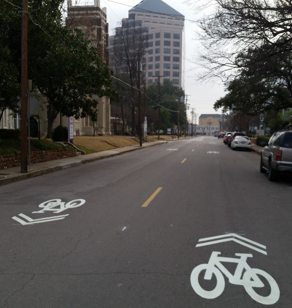 Ashley Haire, Bicycle Engineer and Coordinator for the city of Dallas has a blog she pays for herself and posts about new bicycle infrastructure and other bicycling issues she works on throughout the city. Check out this important update about Fairmount in Uptown and why and how sharrows are implemented.