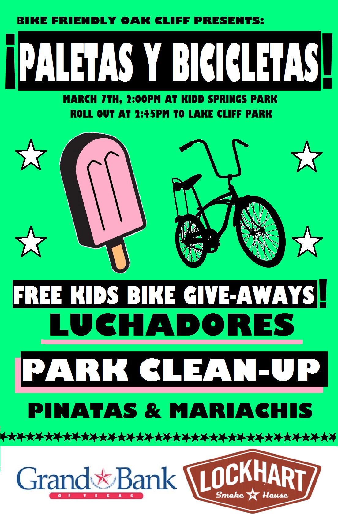 Bike Friendly Oak Cliff is hosting a New Spring Break Event, ¡Paletas y Bicicletas!, that will include Multiple Kids Bike Giveaways, Luchadores, Pinatas, Mariachis and DOOR-PRIZES. More information about the event can be found here. We would like to invite all cyclists, groups, clubs and individuals to join us that day. The idea is that groups […]